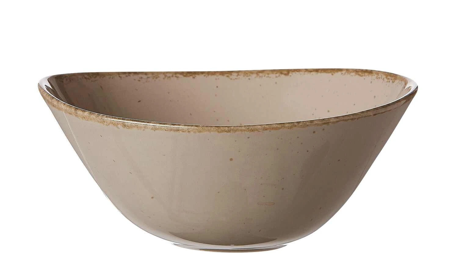 Charmanter Vintage-Look mit Unikat-Charakter: schmale, braune Farbkanten mit Used-Effekt und feine braune, zufällig verstreute Farbsprenkel, die bewirken, dass kein Geschirrteil dem anderen gleicht.